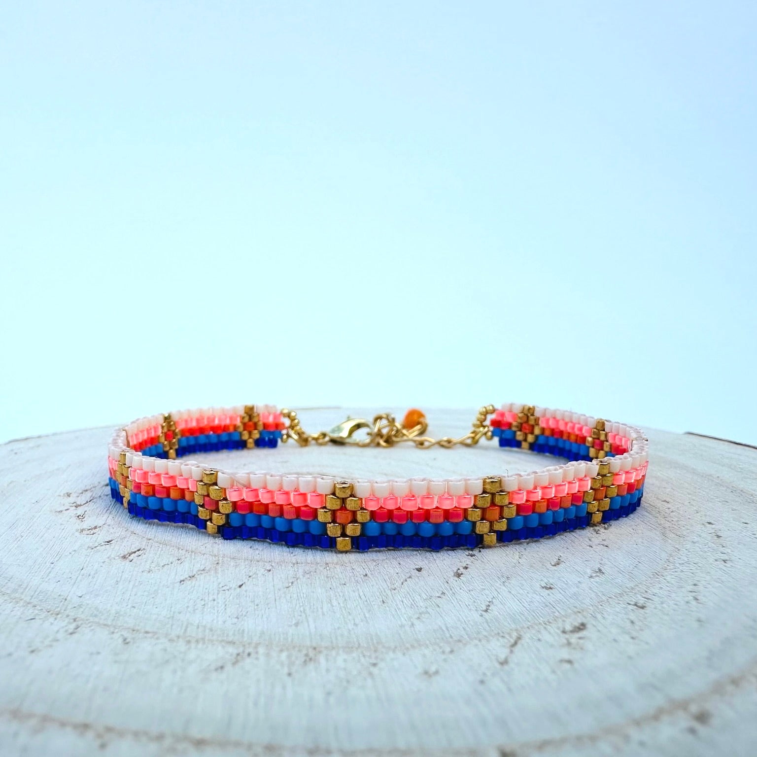 Bracelet entièrement tissé à la main à l'aiguille sans métier à tisser avec de petites perles en verre et toutes calibrées à 1,6 mm.