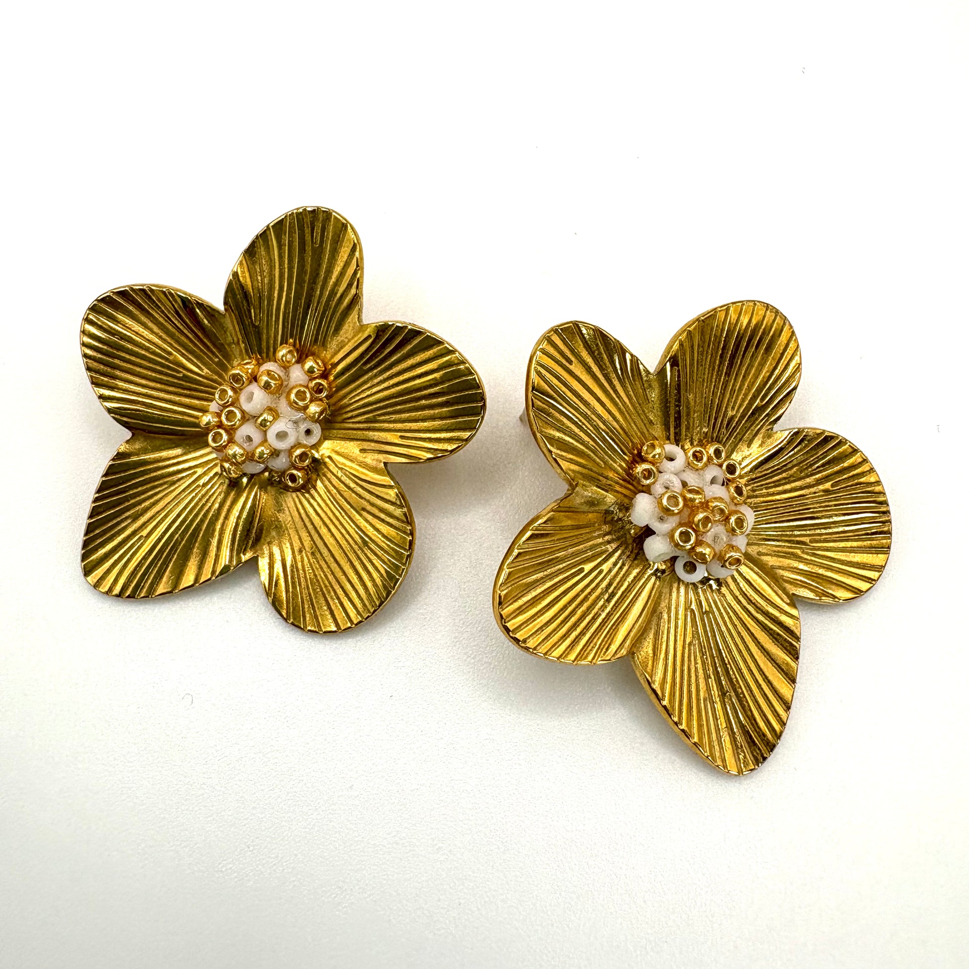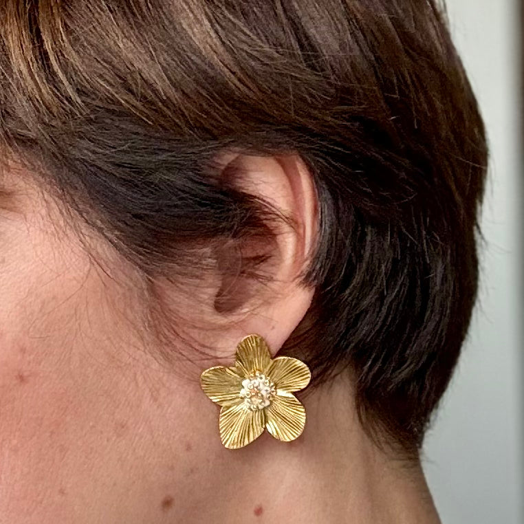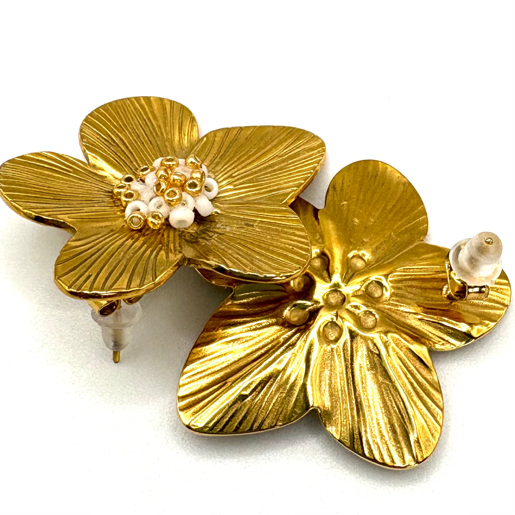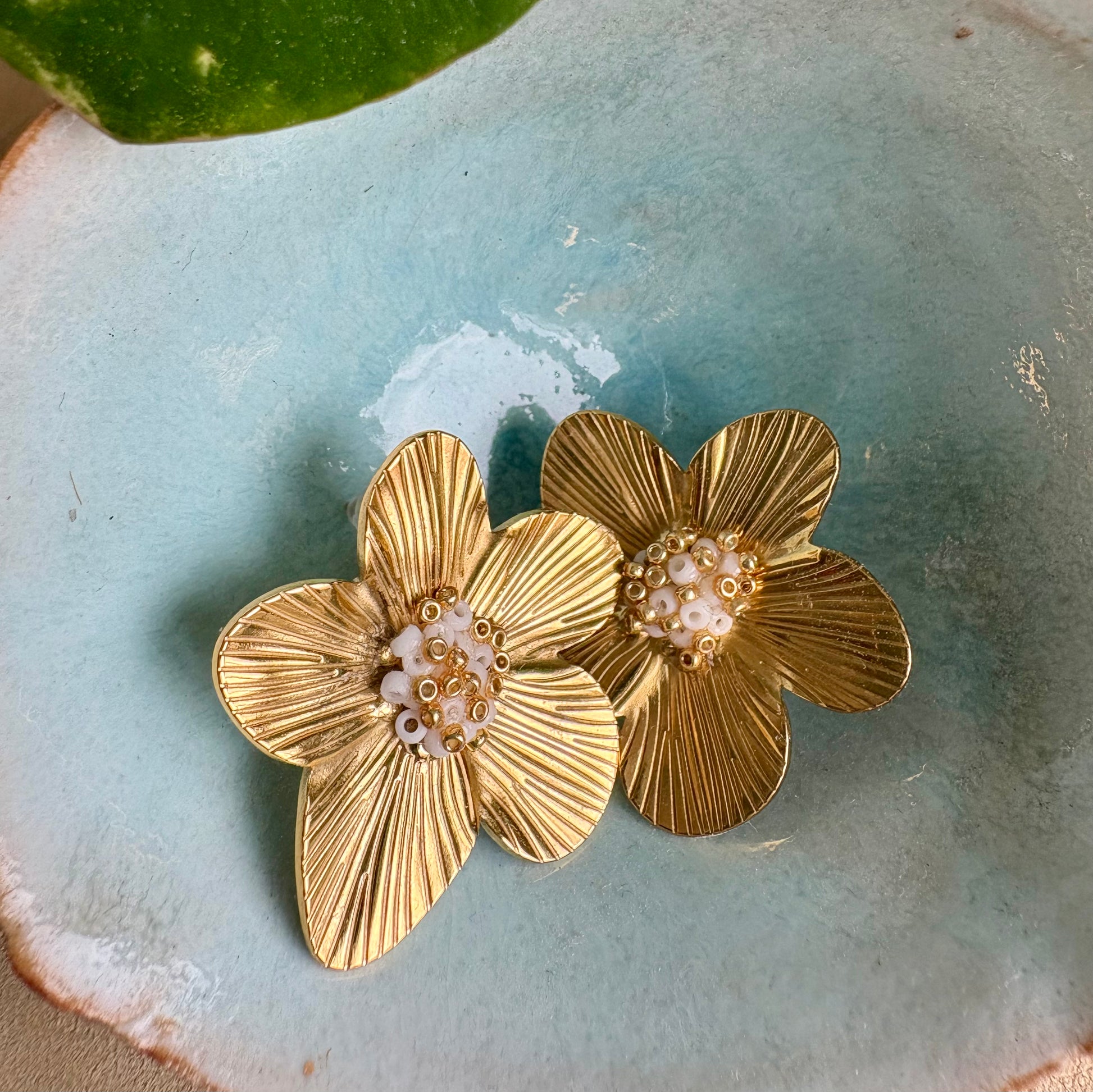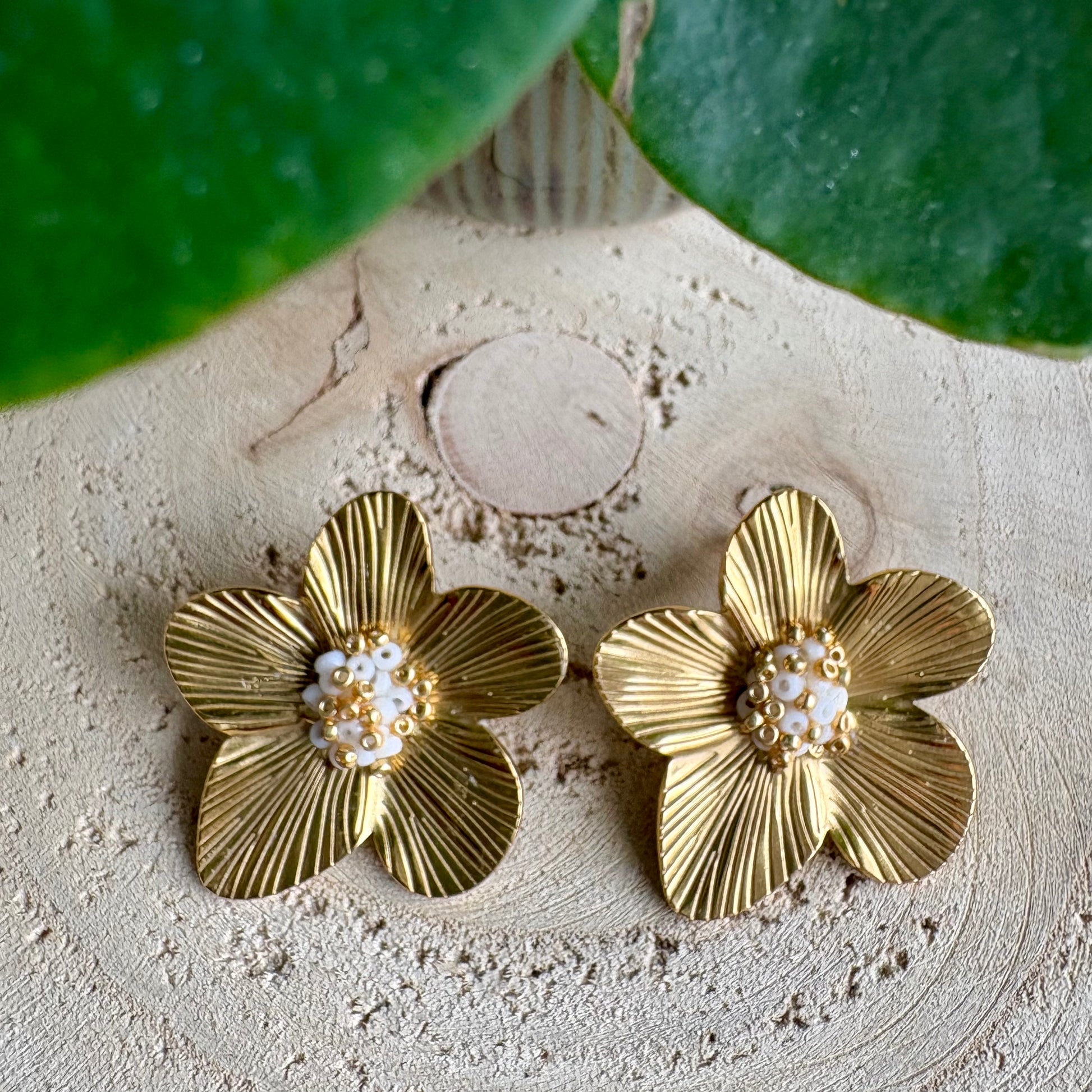 Zarte und elegante Ohrringe in Form einer Kirschblüte – verziert mit einer feinen Glasperle im Blütenzentrum.