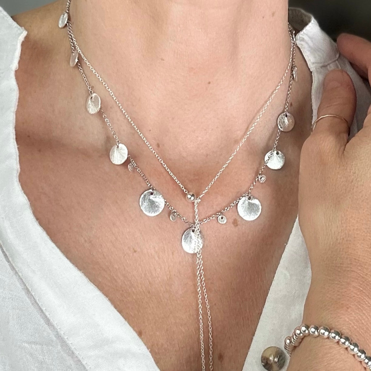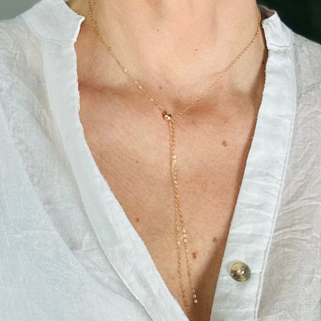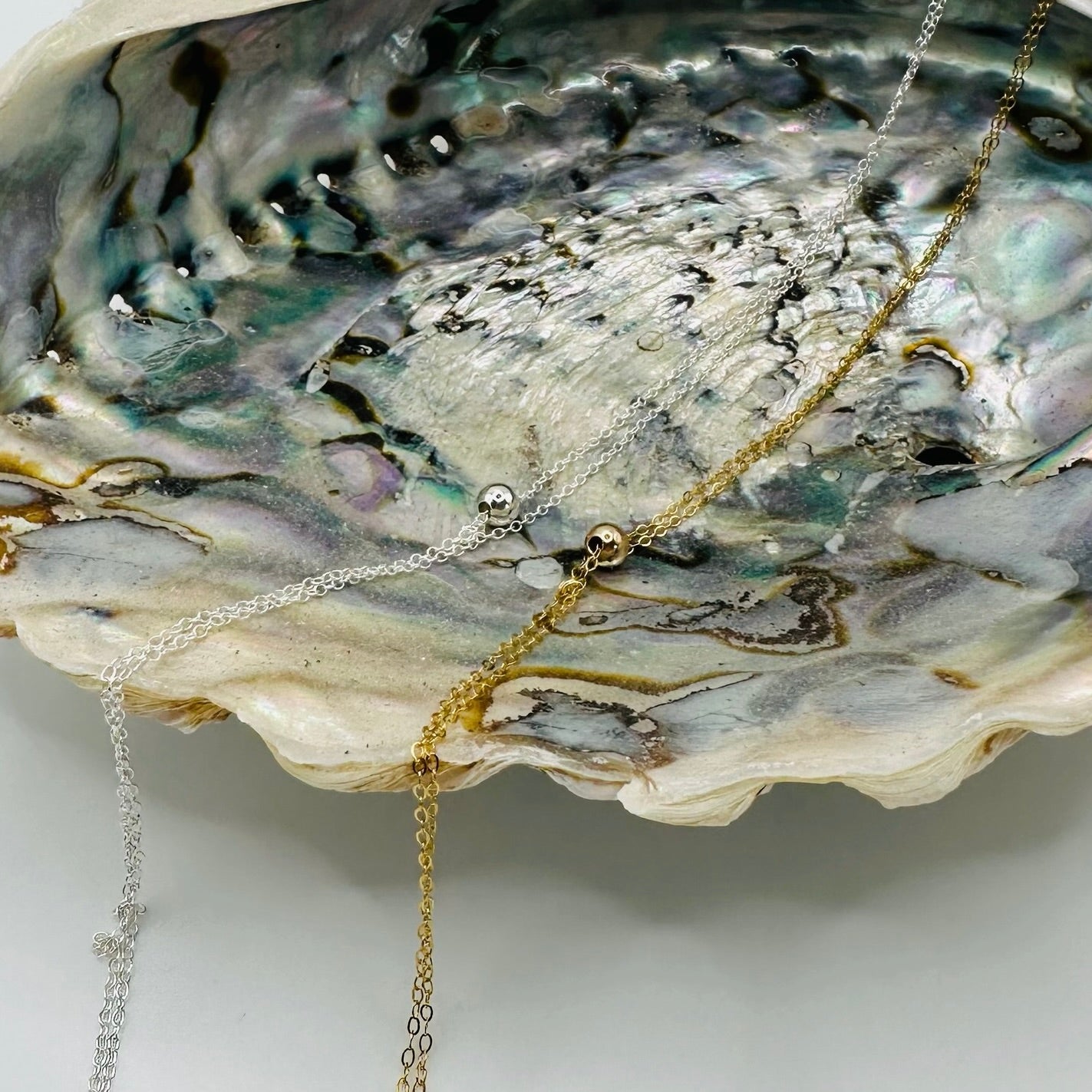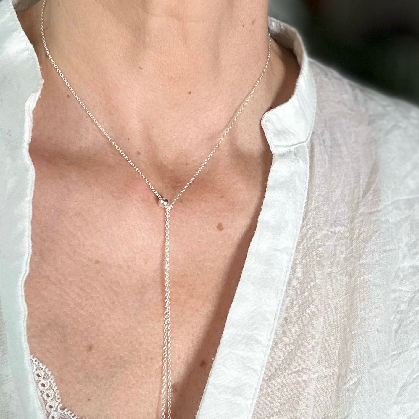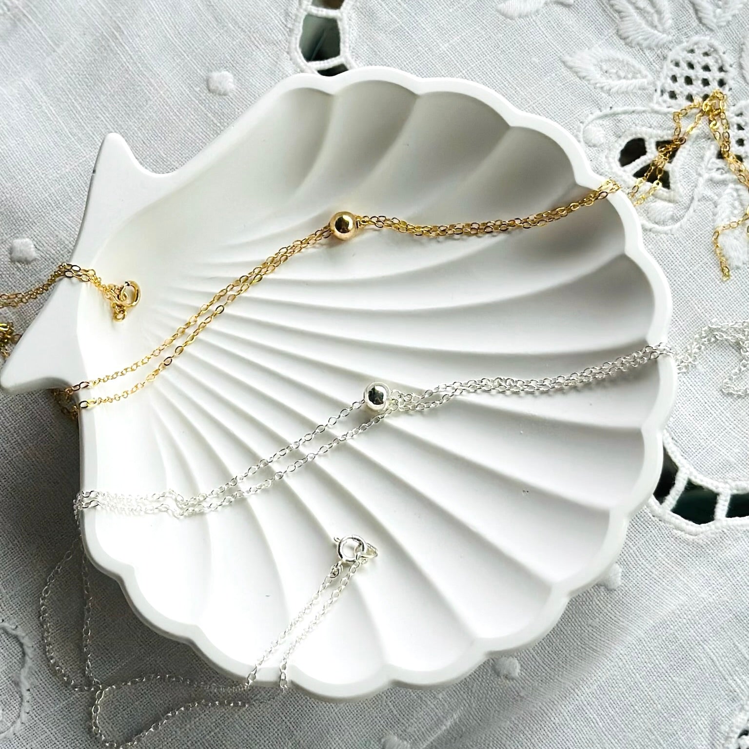 Feine Kette mit einer 5 mm Perle, ein sehr trendiges, schlichtes und schickes Collier, das alleine oder in Kombination getragen werden kann.